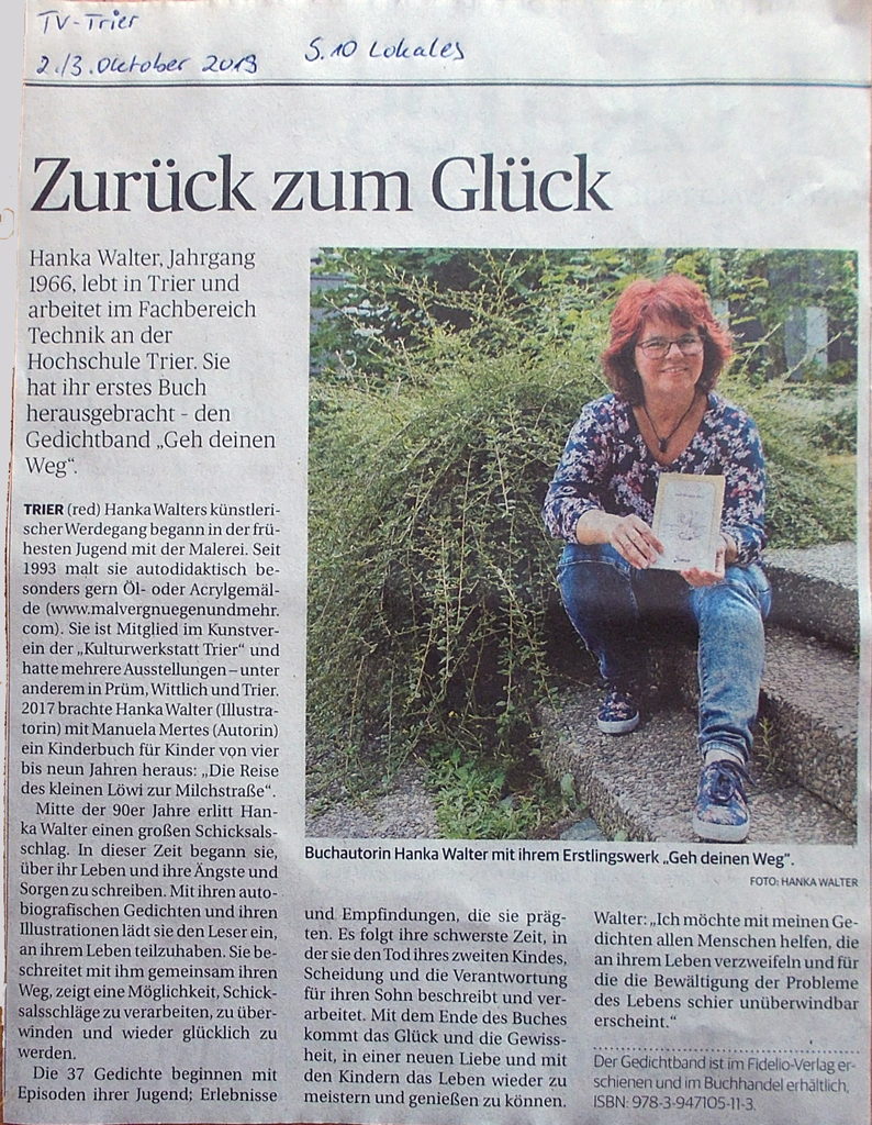 Meine autobiographischen Gedichte beschreiten mit Ihnen diesen Weg – zeigen eine Möglichkeit, wieder glücklich zu werden. –