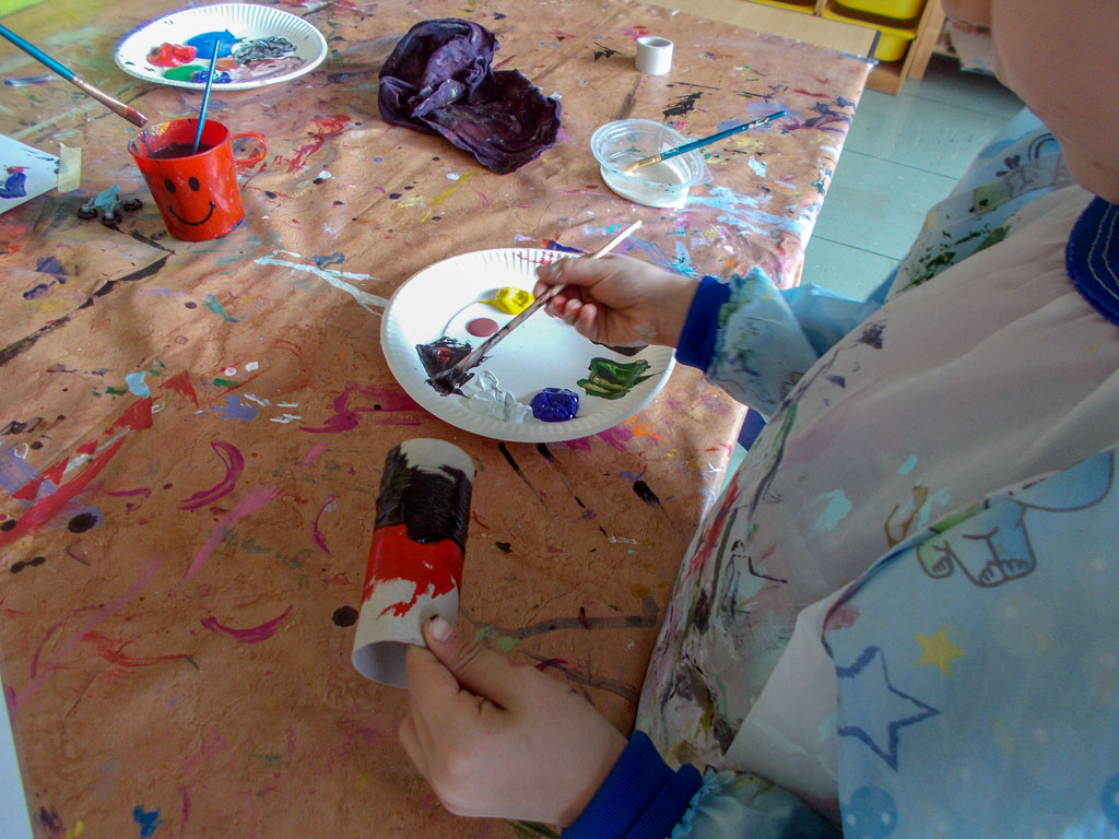 Mittlerweile trifft sich hier ein Stamm von 8-9 Leuten, die immer wieder mit sehr viel Leidenschaft und Kreativität malen, zeichnen und basteln. Dazu kommen immer noch ein bis zwei Teilnehmer, die ihren Spaß an diesem Hobby entdecken.